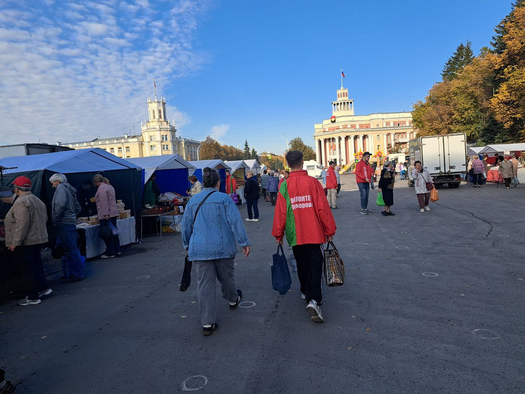 На площади Советов была организована тематическая фотозона, украшенная дарами осени и логотипом Всероссийской ярмарки, работала полевая кухня.