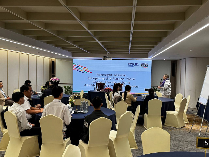 В ходе форсайт-сессии «Проектирование будущего: от глобальных трендов к совместным проектным инициативам БРИКС–АСЕАН» участники проанализировали ключевые тенденции развития молодежного предпринимательства, включая применение искусственного интеллекта, развитие креативной экономики и новые форматы международного взаимодействия. Особое внимание было уделено разработке конкретных проектных инициатив в образовательной, социальной, культурной и инновационной сферах, а также определению первых шагов по их практической реализации. Итогом работы стала подготовка дорожной карты с перечнем совместных проектов и поэтапным планом их внедрения, направленным на развитие молодежного предпринимательства в пространстве АСЕАН–БРИКС.