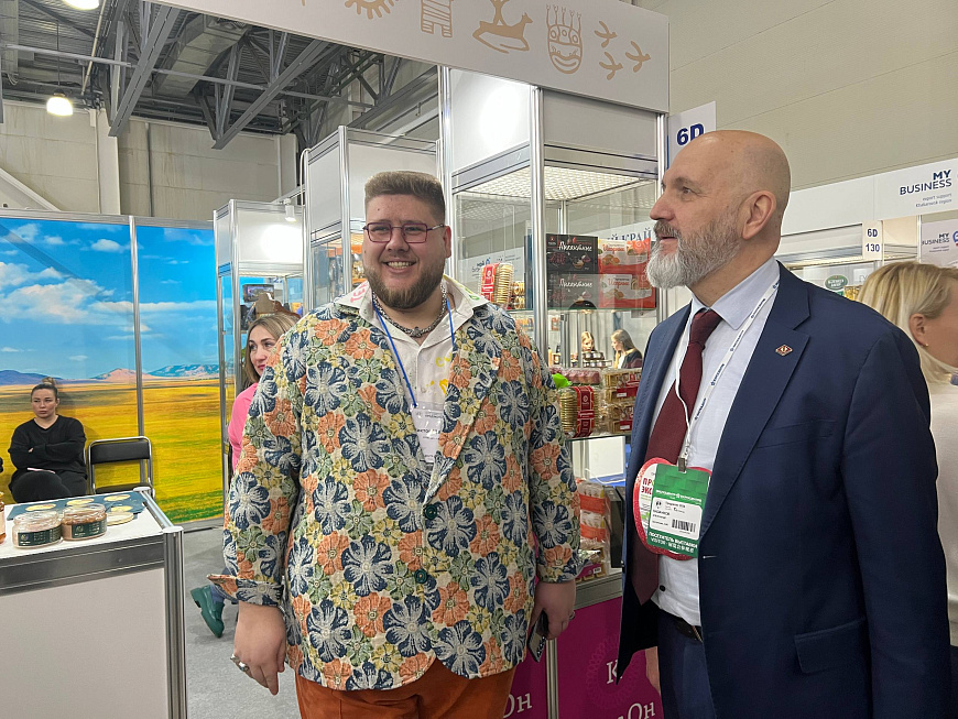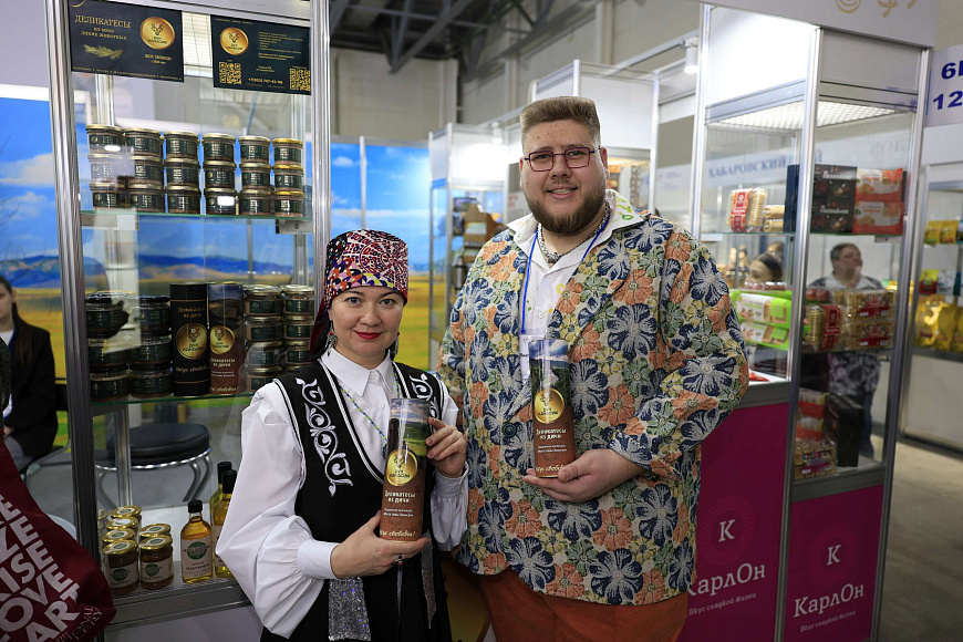 Экспозиция кооператива «Дух Хакасии» Хакреспотребсоюза была сформирована из продукции, уже зарекомендовавшей себя у потребителей. Как рассказал директор по экспорту и креативному развитию Виктор Щеколдин, на выставку привезли флагманские позиции — паштеты из печени, мяса косули и марала, томлёное мясо, а также продукты с региональными специалитетами: грибами, папоротником, кедровым орехом, брусникой и полбой.