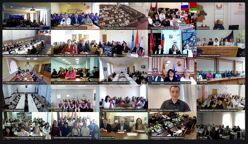 В телемосте приняли участие студенты и учащиеся ведущих профильных учебных заведений: Российского университета кооперации и его15 филиалов от Камчатки до Калининграда, а также Белорусского торгово-экономического университета потребительской кооперации, Минского, Могилевского, Гомельского, Барановичского, Гродненского и Молодечненского колледжей Белкоопсоюза.